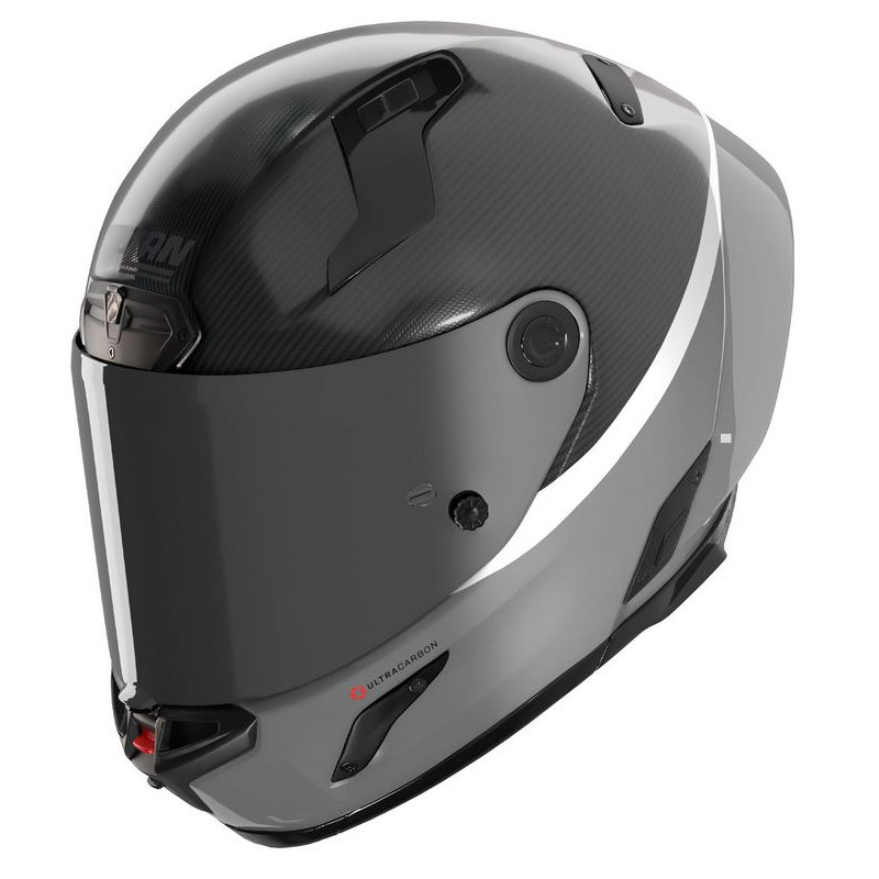 Made of carbon with 4 outer shell sizes, Cheek pads with emergency removal system and exclusive headset position adjustment system. Aerodynamic appendix (RAS-Racetrack Aerodynamic Spoiler). dark smoke visor and pinlock included in the package.