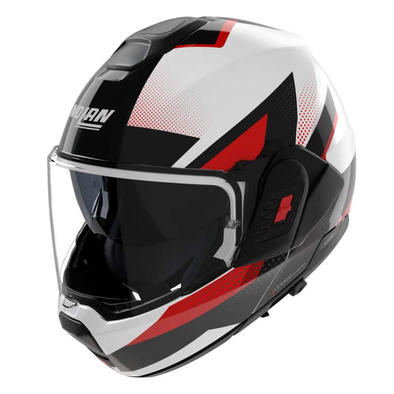 Made of lexan with two outer shell sizes, chin guard with 180-degree rotation, removable interior, n-com intercom predisposition, ultrawide visor, integrated sun visor and pinlock lens included in the package. P/J and ECE 22-06 approval.