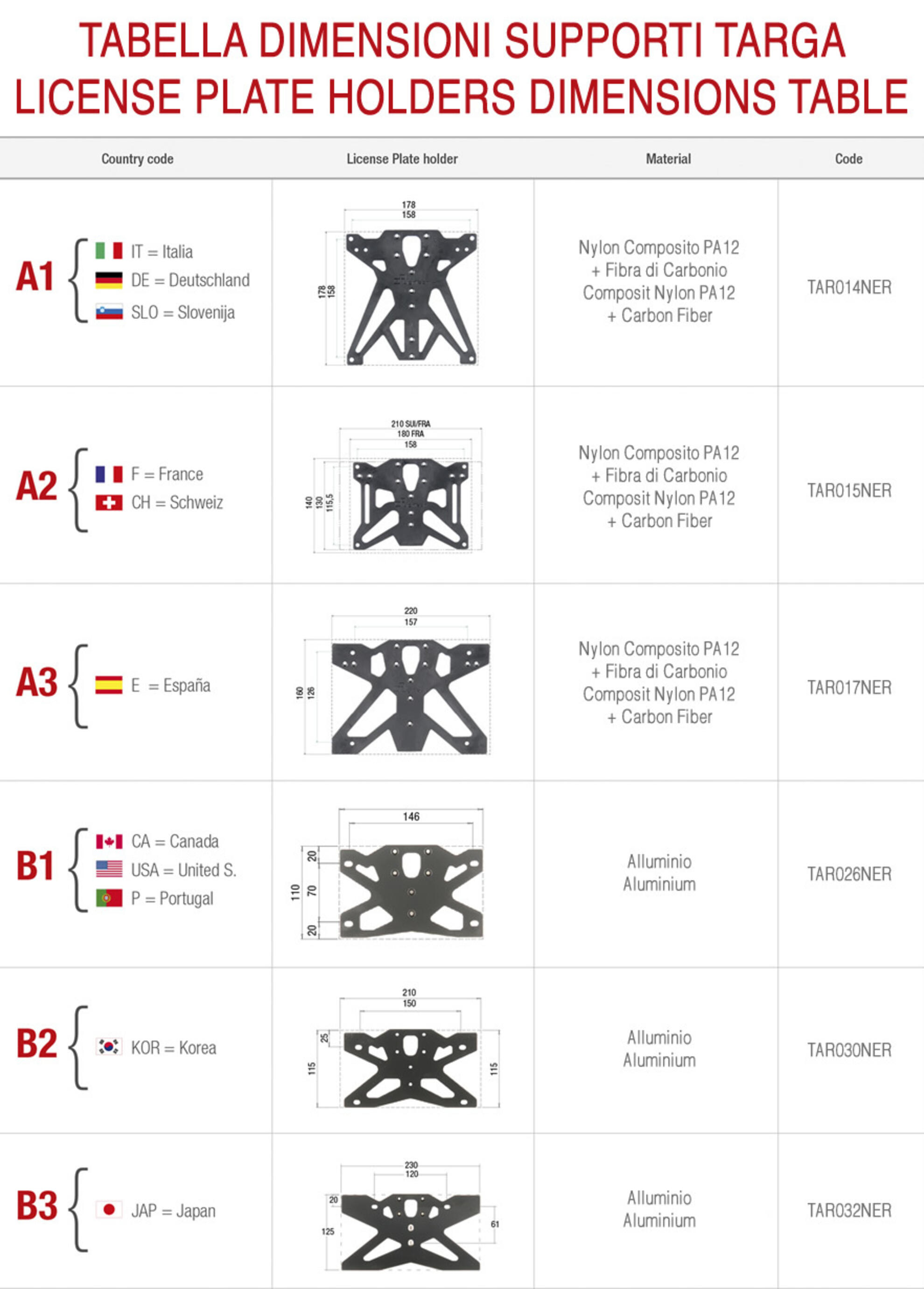 The adjustable license plate holder kit includes a type-approved license plate light and reflector, as well as everything needed for proper installation.