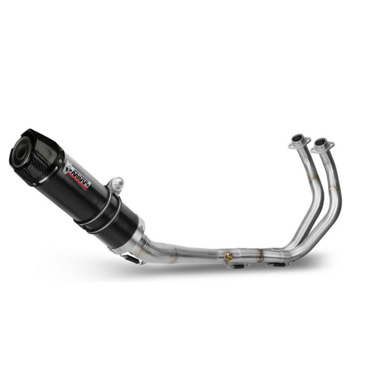 Mivv GP carbon full exhaust system with high-mount carbon end cap.