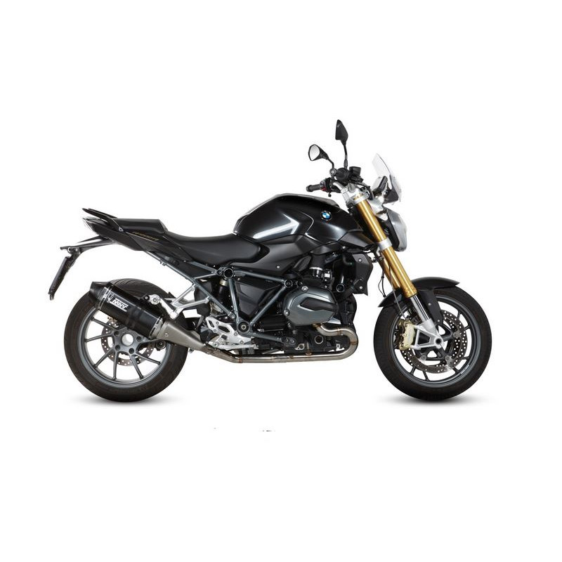With a carbon end cap and mounting strap, the central body is made of black stainless steel with a "Black Moon" effect, giving the product an aggressive look. The exhaust is hexagonal in shape.