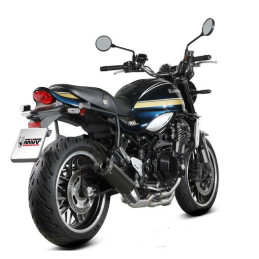 Mivv HR-1 exhaust terminal in black stainless steel with short carbon end cap.