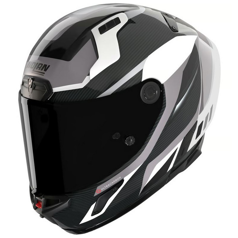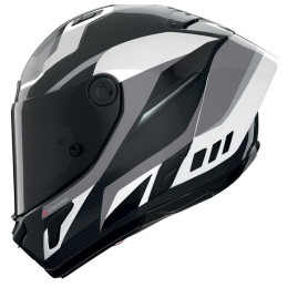 Fabriqué en carbone avec 4 tailles de coque extérieure, coussinets de joues avec système de retrait d'urgence et système exclusif de réglage de la position du casque. Appendice aérodynamique (Spoiler aérodynamique RAS-Racetrack). Visière dark smoke et pinlock inclus dans l'emballage.