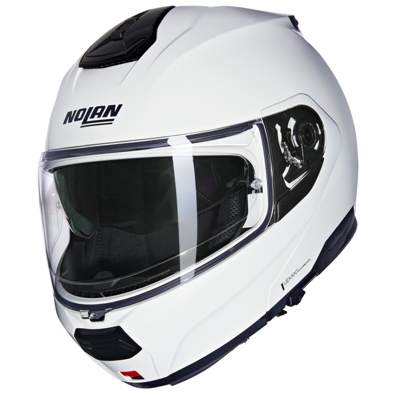 Fabriqué en polycarbonate lexan avec coque externe de taille unique, intérieur amovible, double homologation P/J, préparation interphone n-com, visière externe ultralarge et pare-soleil intégré. Visière Pinlock incluse dans l'emballage et homologation ECE 22-06.