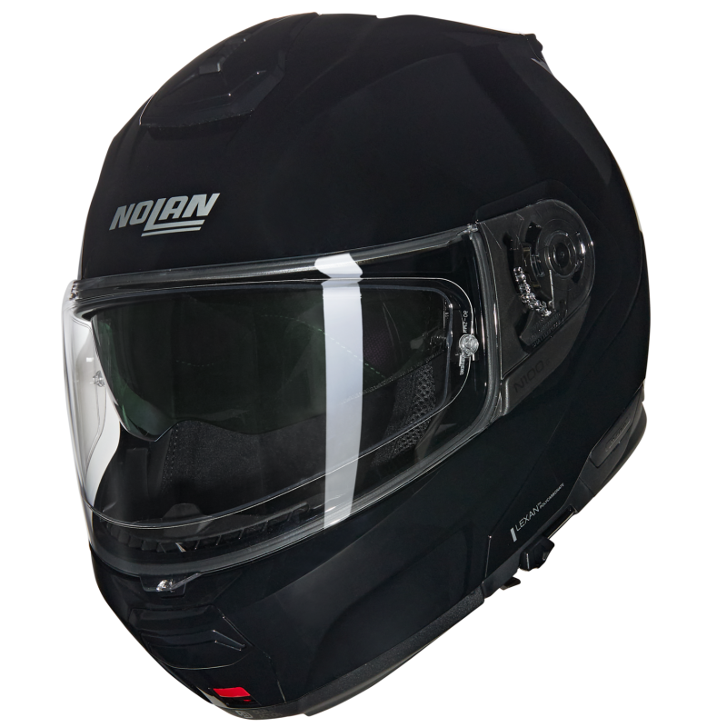 Fabriqué en lexan avec deux tailles de coque externe, mentonnière avec rotation à 180 degrés, intérieur amovible, préparation pour interphone n-com, visière ultra-large, pare-soleil intégré et lentille pinlock inclus dans l'emballage. Homologation P/J et ECE 22-06.