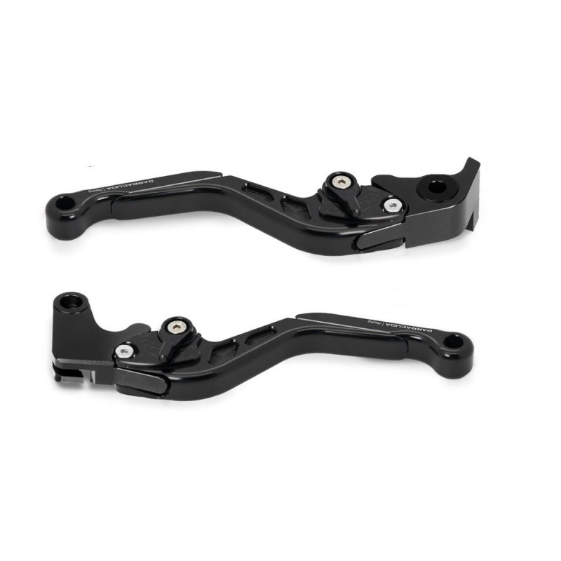Ils sont équipés de 2 réglages, en largeur de levier et en longueur de terminal. Ils ont une conception technique avec un allègement et une ergonomie optimisés pour une utilisation course et route. Ils peuvent être personnalisés en achetant séparément le terminal à levier dans les couleurs anodisées : argent, or, vert et rouge. Conception de barracuda emblématique.