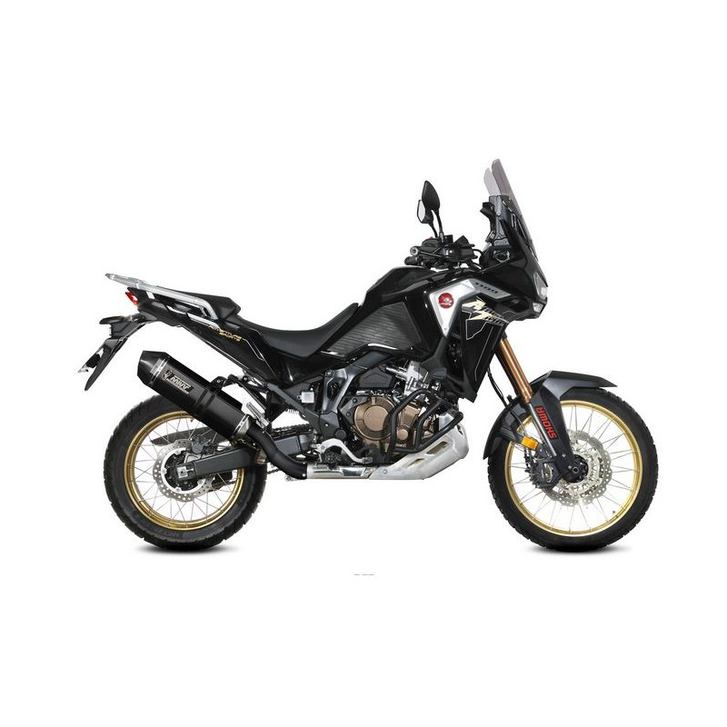 Avec son embout en carbone et sa bride de fixation, le corps central est en acier inoxydable noir effet « Black Moon », conférant au produit un look agressif. L'échappement est de forme hexagonale.