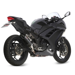 Échappement Mivv GP en acier inoxydable noir avec embout en fibre de carbone.