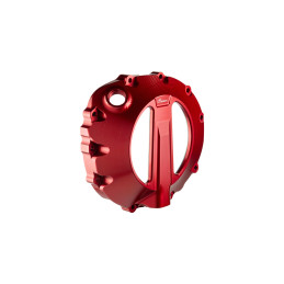 Couvercle d'embrayage en aluminium usiné. La partie transparente est en Lexan, un polycarbonate reconnu pour son exceptionnelle résistance aux chocs et sa légèreté ; il est également résistant à la chaleur, aux intempéries et aux UV. Disponible en plusieurs coloris, voir le nuancier.