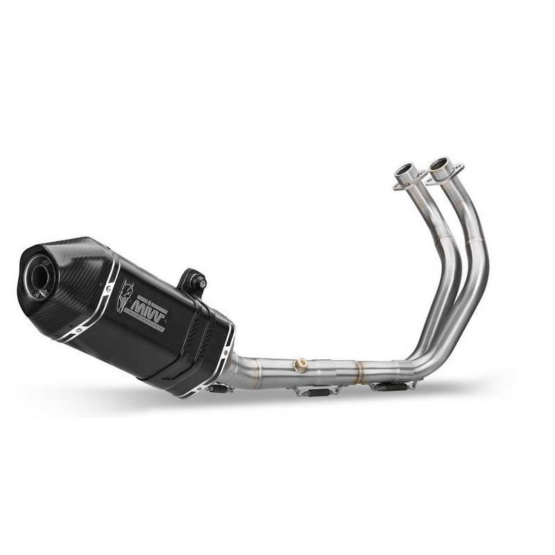 Ligne d'échappement complète mivv Speed Edge en acier inoxydable noir avec embout en carbone.