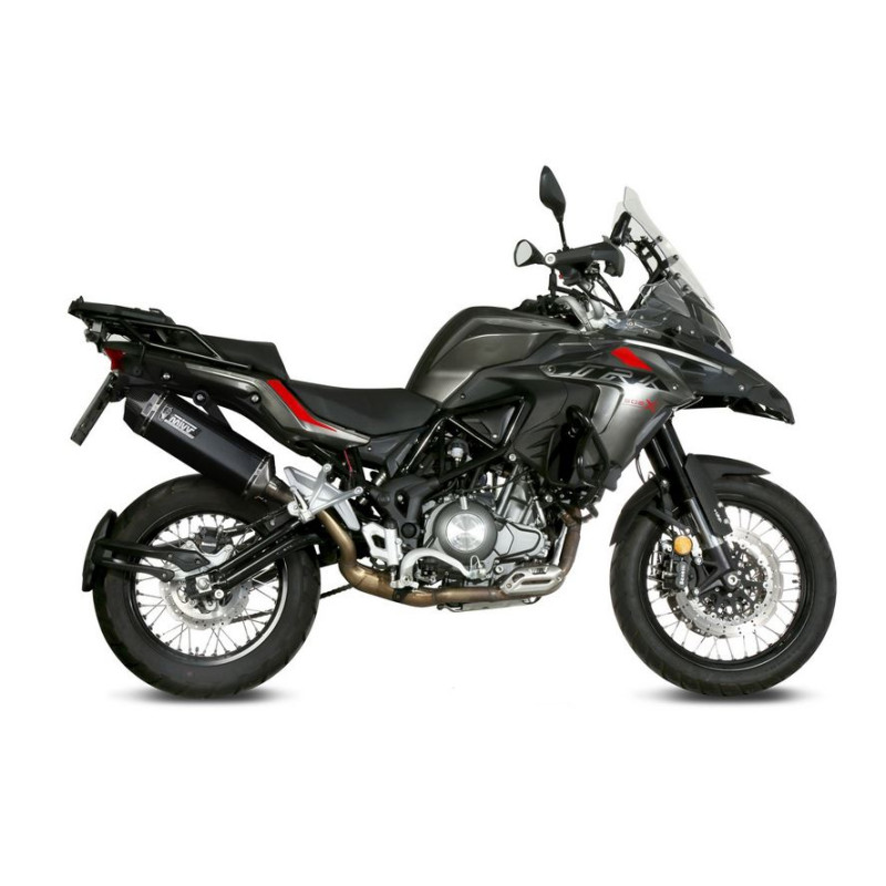 Avec son embout en carbone et sa bride de fixation, le corps central est en acier inoxydable noir effet « Black Moon », conférant au produit un look agressif. L'échappement est de forme hexagonale.