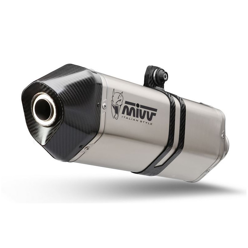 Silencieux d'échappement Mivv Speed Edge en acier inoxydable avec embout en carbone.