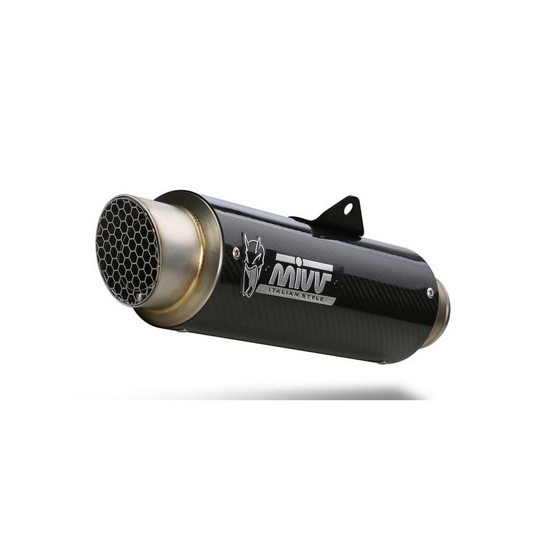 Silencieux d'échappement Mivv Delta Race en acier inoxydable avec embout en carbone.