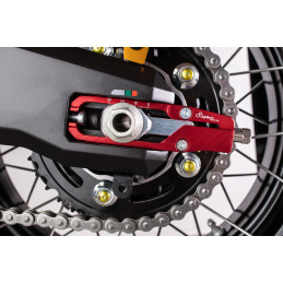 Fabriqué en Ergal 7075 pour une résistance accrue, il offre un réglage de la chaîne plus précis et plus facile que les tendeurs standard. Il est doté d'une vis de réglage externe pour un réglage plus rapide et plus précis. Une échelle gravée au laser est intégrée au tendeur pour un réglage plus facile.
