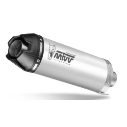 Terminal d'échappement Mivv AK-1 en acier noir avec capuchon en carbone.