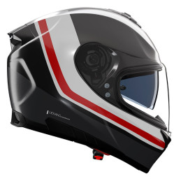 Realizzato in termoplastica con una misura di calotta esterna. Visiera parasole a scomparsa e interni removibili. Predisposizione per il kit interfono bluetooth e lente pinlock. Chiusura con cinturino micrometrico e omologazione ECE 22-06.