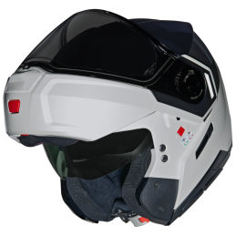Realizzato in lexan con due misure di calotta esterna, mentoniera con rotazione a 180 gradi, interni sfoderabili, predisposizione interfono n-com, visiera ultrawide e visiera parasole integrata. Omologazione P/J e ECE 22-06.