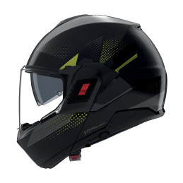 Realizzato in lexan con due misure di calotta esterna, mentoniera con rotazione a 180 gradi, interni sfoderabili, predisposizione interfono n-com, visiera ultrawide e visiera parasole integrata. Omologazione P/J e ECE 22-06.