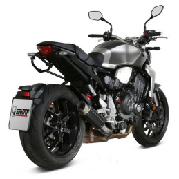 Terminale di scarico mivv delta race in acciaio nero con coppa in carbonio.