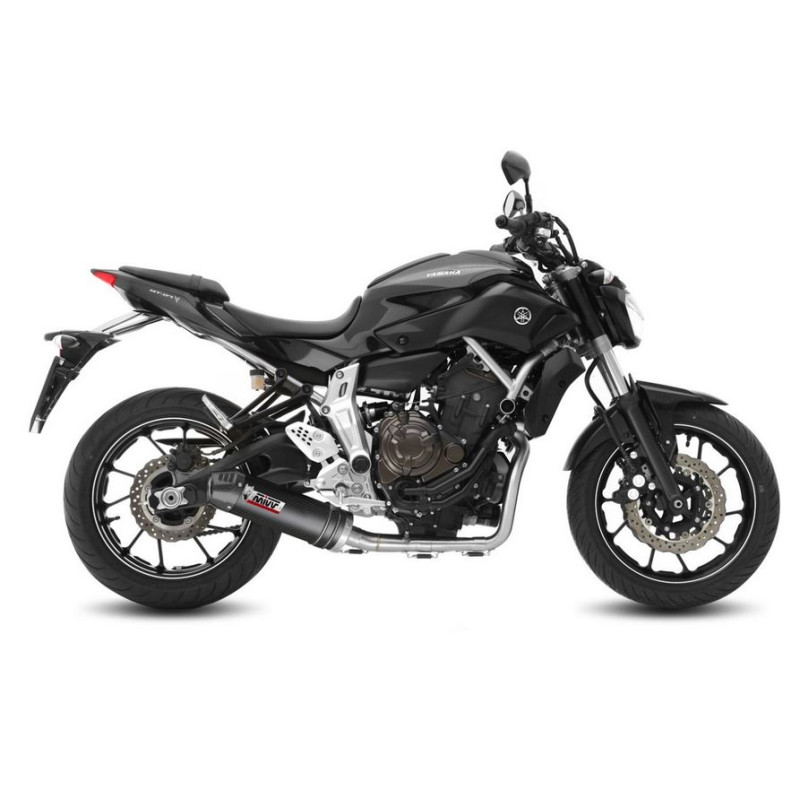 Impianto di scarico completo mivv delta race in acciaio nero con coppa in carbonio.