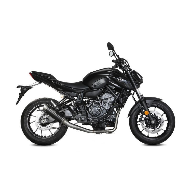 Impianto di scarico completo, posizione alto, mivv GP in acciaio inox nero con coppa carbonio.