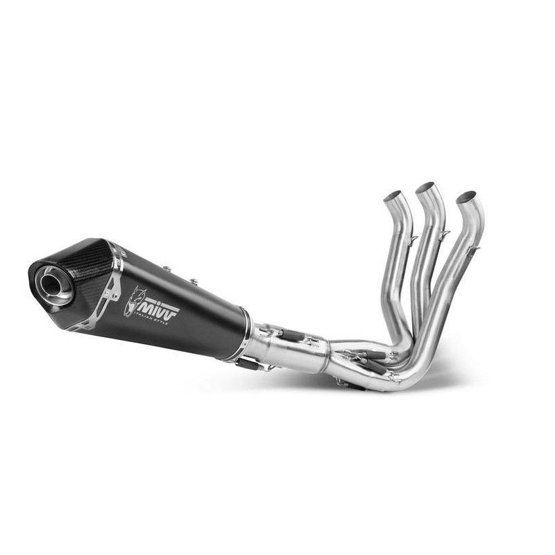 Impianto di scarico completo mivv delta race in acciaio nero con coppa in carbonio.