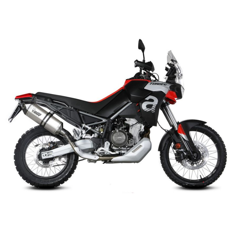 Realizzato con corpo in titanio e con coppa e fascetta di ancoraggio in carbonio, lo scarico è di forma esagonale.