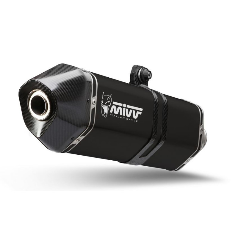 Terminale di scarico mivv Speed Edge in acciaio nero con coppa carbonio.