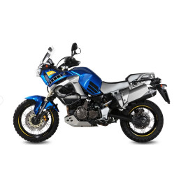 Con coppa e fascetta di ancoraggio in carbonio, il corpo centrale è realizzato in acciaio inox nero con effetto “Black Moon”, conferendo al prodotto un look aggressivo. Lo scarico è di forma esagonale.